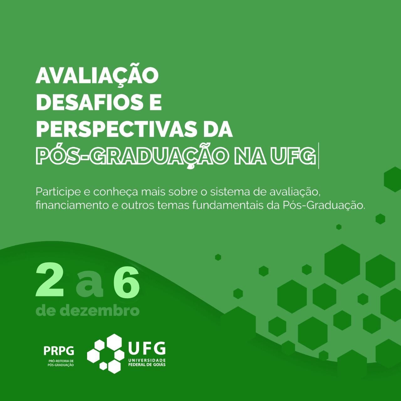 Nos próximos dias 2 a 6 de dezembro, a UFG promove o evento intitulado “Avaliação, Desafios e perspectivas da Pós-Graduação na UFG”, no qual será discutido o cenário atual da Pós-Graduação.